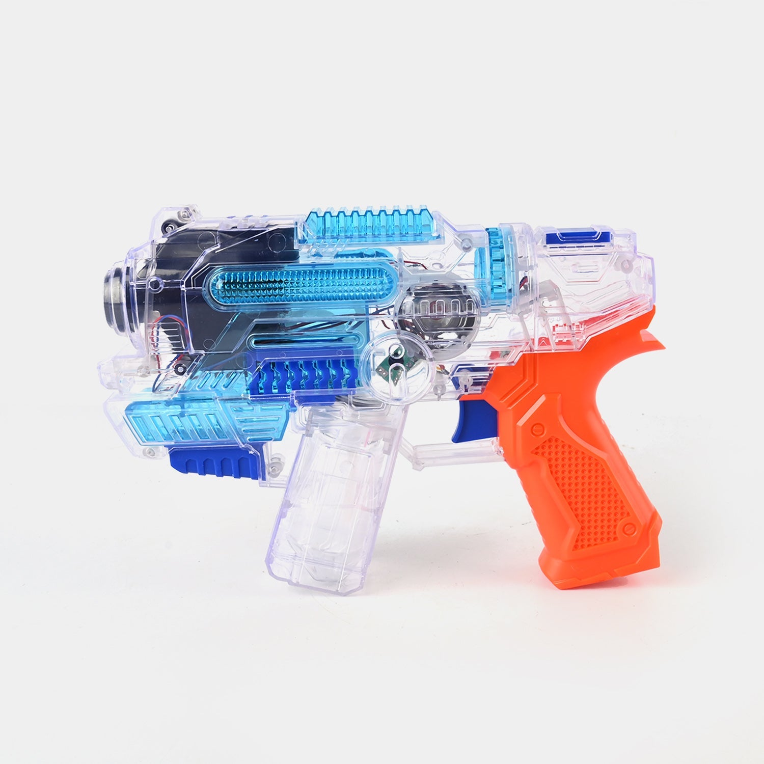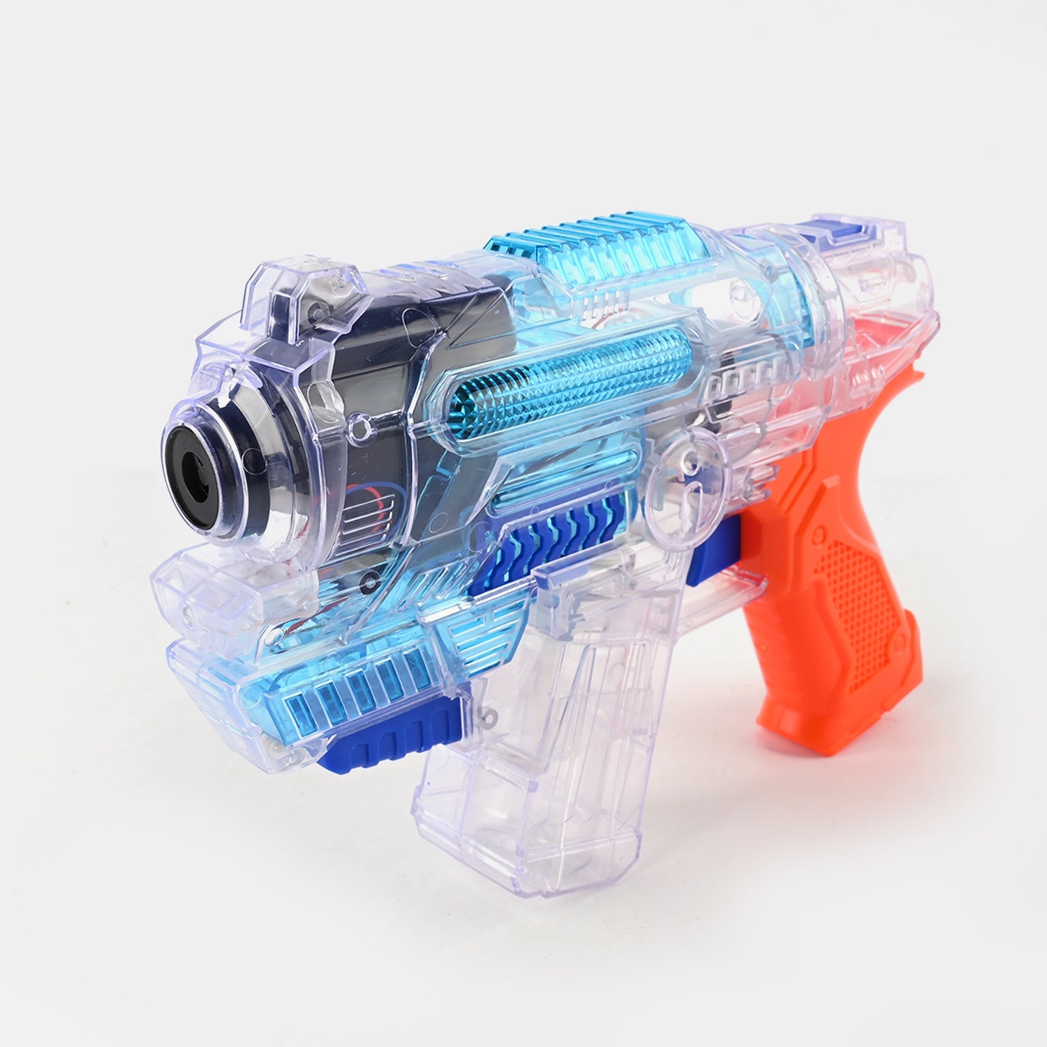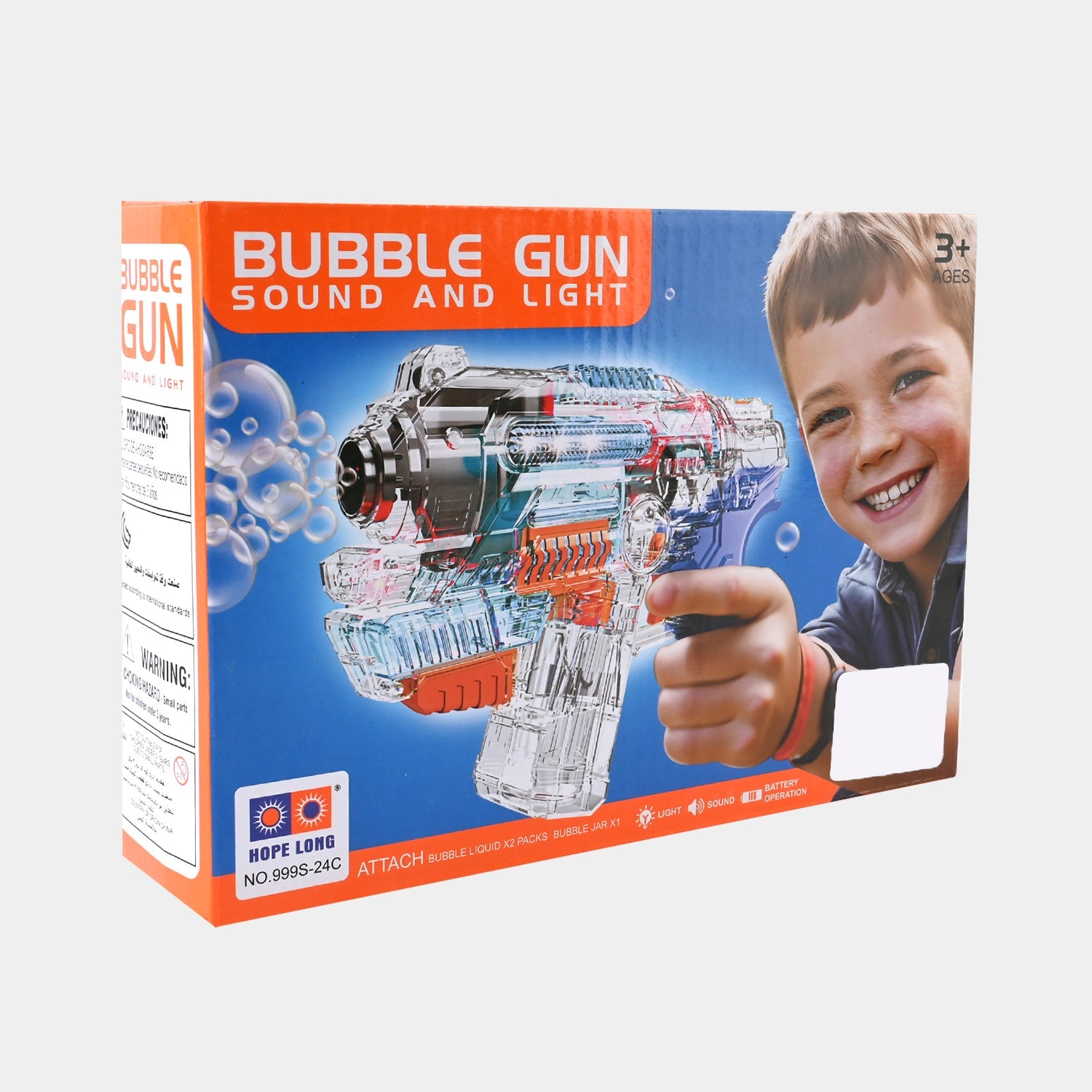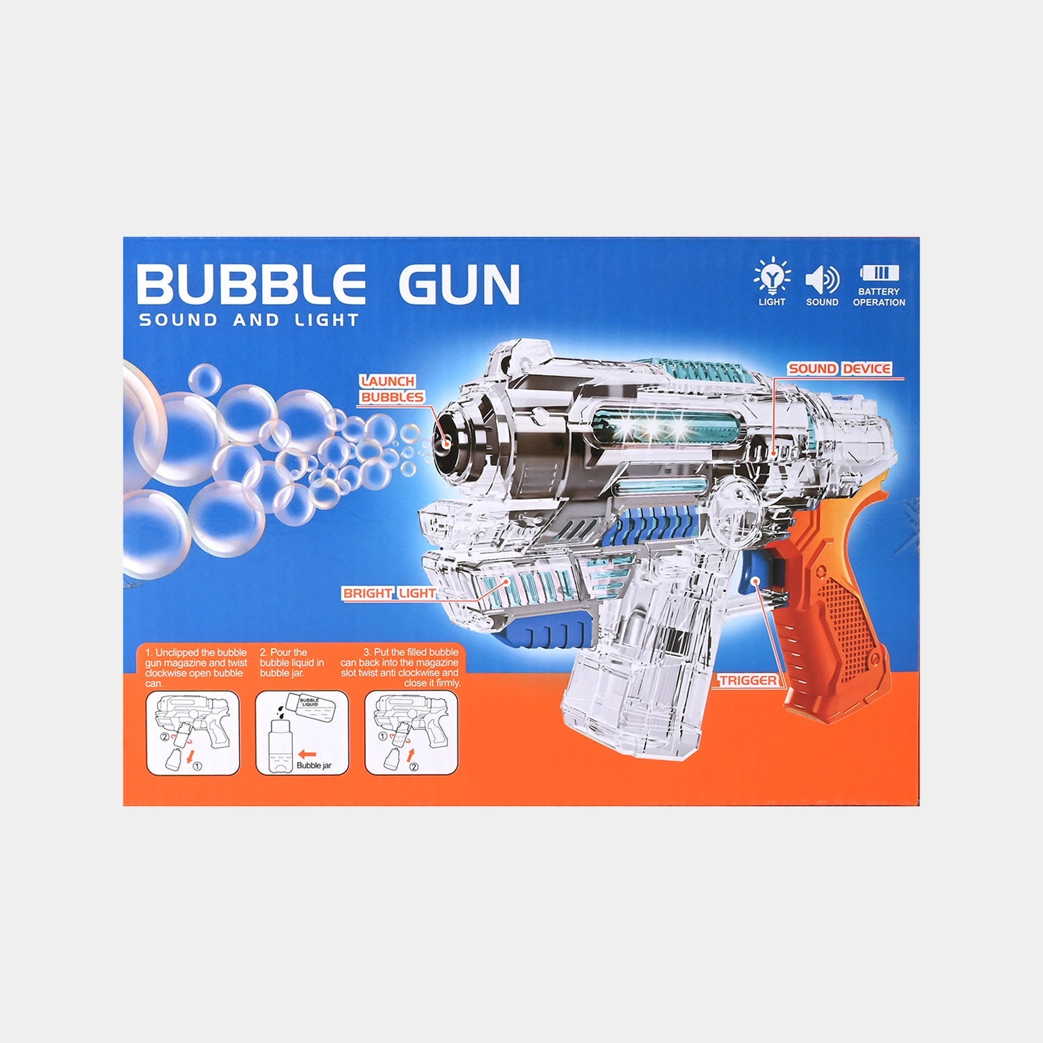 This Bubble Blaster is a thrilling toy that transforms playtime into a magical bubble adventure! It produces a stream of mesmerizing bubbles and also lights up and emits exciting sounds for an immersive experience. Lock the bubble liquid bottle into the magazine slot, and watch as it creates a cascade of bubbles with each press of the trigger.